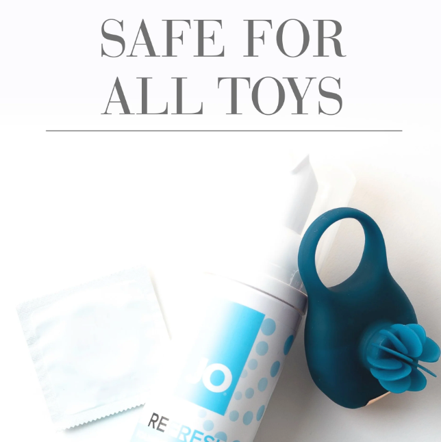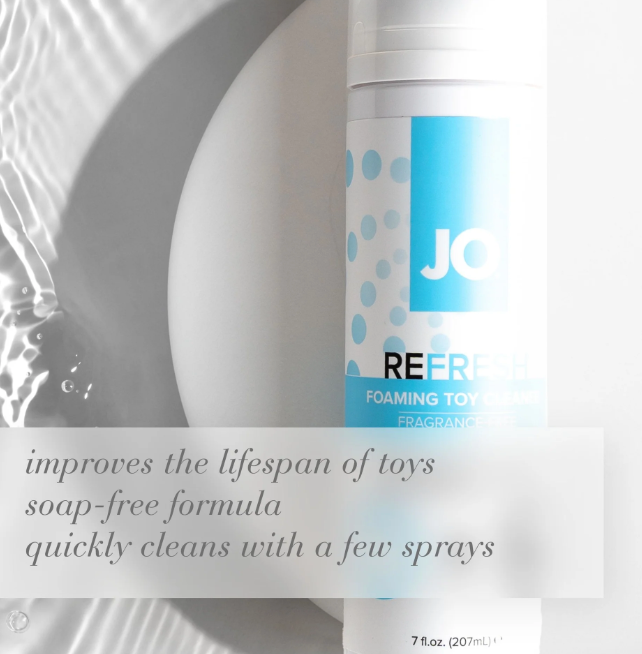 JO Refresh Foaming Toy Cleaner is a gentle, fragrance-free formula that easily cleans all types of toy surfaces and can extend the lifespan of your most intimate items. The fast-acting foam cleaner clings to the surfaces it needs to clean but leaves no residue. And, it needs only 60 seconds to work before it can be rinsed away.